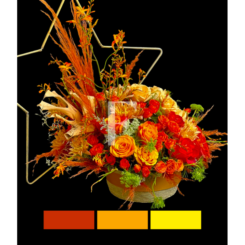 Hermosas #flores anaranjadas de temporada componen nuestra #Luna_Naranja acompañadas de finos #follajes agregando una agradable textura !