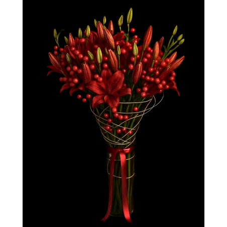 A festive interpretation of our classic Bella arrangement. Deep lilies, metallic spheres, and subtle foliage combine to create an elegant and...