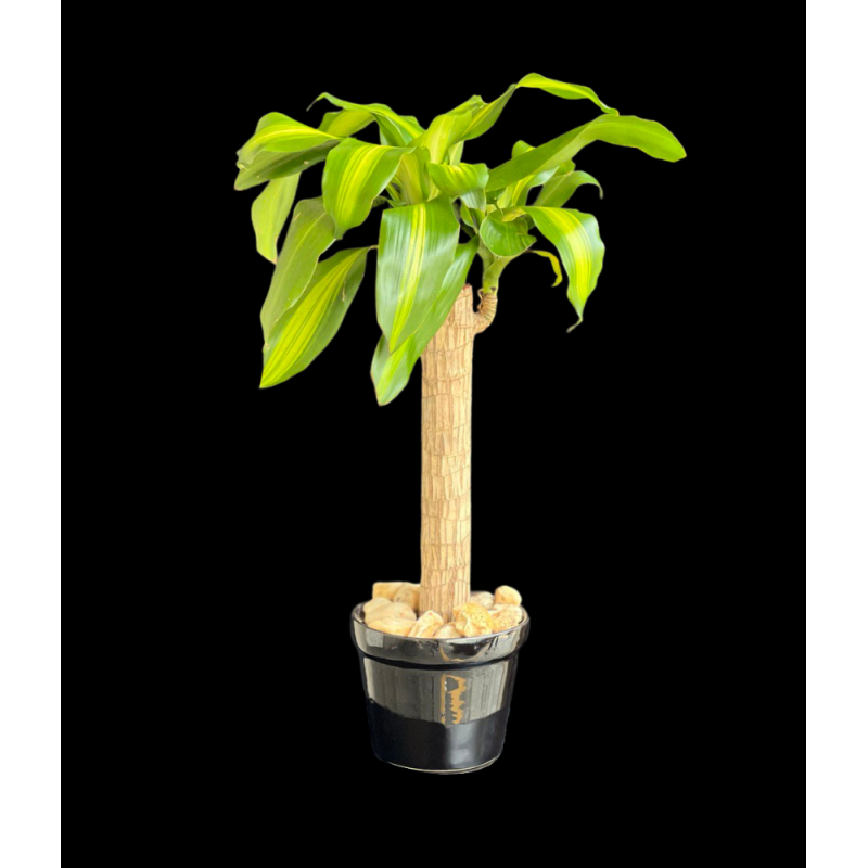 Hermosa Planta en elegante base de cerámica negra. Perfecta para tu casa u oficina.