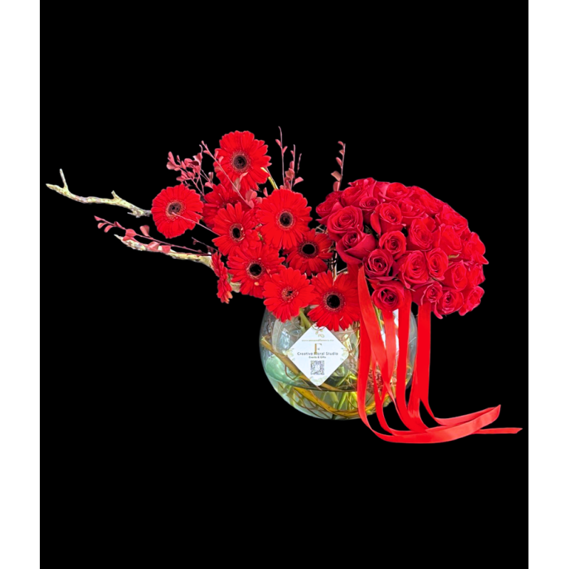 Atado de Rosas premium y gerberas armonizadas en un diseño elegante y de mucha presencia ... para esa alma gemela que todos tenemos.
